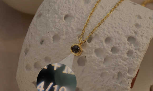 Chaque bijou dissimule un message secret ou une photo personnelle, projeté à travers une lentille optique miniature intégrée dans le bijou. Grâce à la technologie de micro-gravure, vos souvenirs prennent vie sous forme de lumière — visibles en regardant à travers la pierre ou avec une source lumineuse dirigée.
