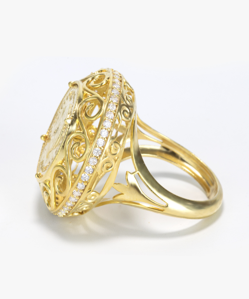 Le prix initial était : 124.00 TND.109.00 TNDLe prix actuel est : 109.00 TND. Rendez hommage à l’élégance d’autrefois avec la Bague Lira , une pièce saisissante en argent massif 925 plaqué or, inspirée des anciennes pièces de monnaie « lira » ottomanes. Son large médaillon finement ciselé met en valeur un profil impérial, entouré d’un motif ajouré aux détails travaillés.