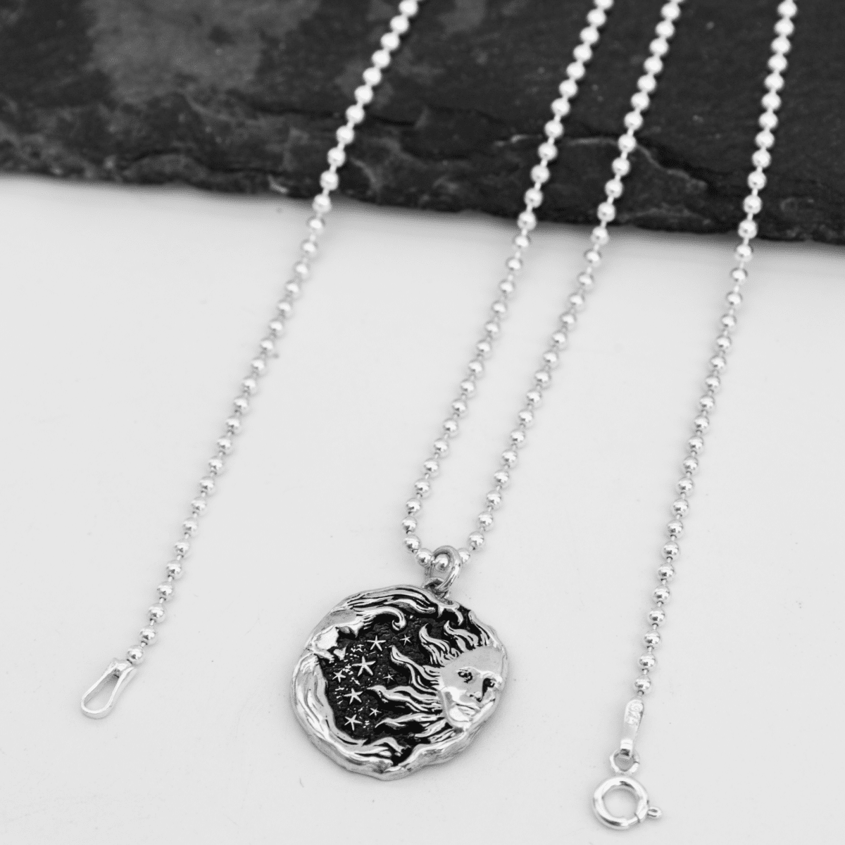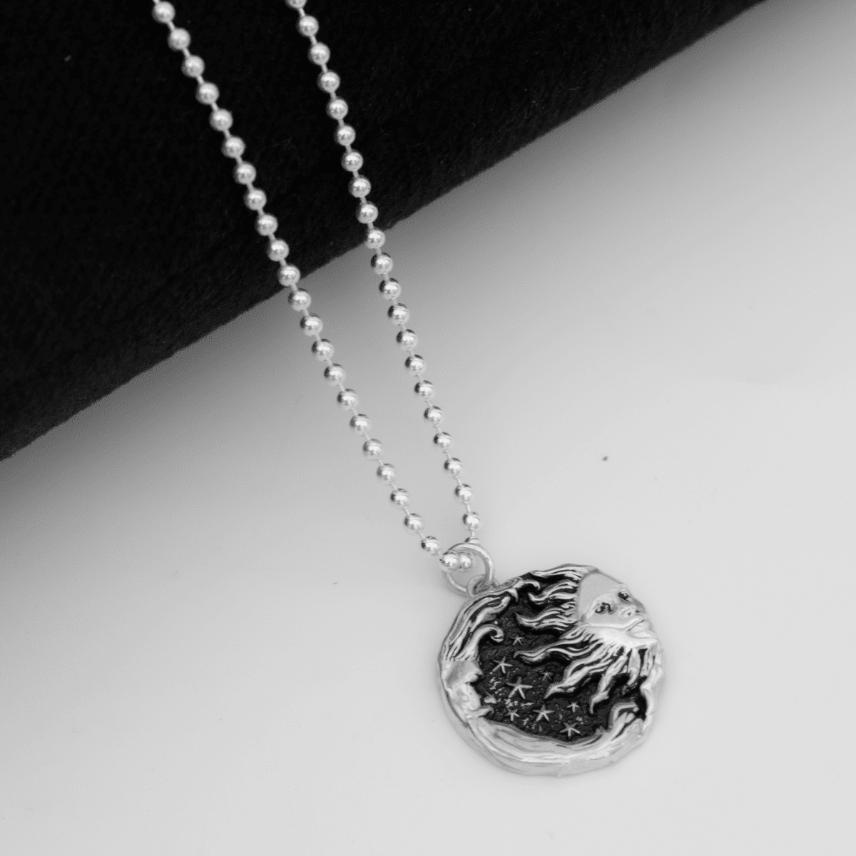 Ce collier en argent 925 véritable met en valeur un pendentif délicat représentant le soleil et la lune, symboles d’équilibre, d’amour et d’harmonie. Une création élégante et pleine de sens, idéale à porter au quotidien ou à offrir à une personne chère.